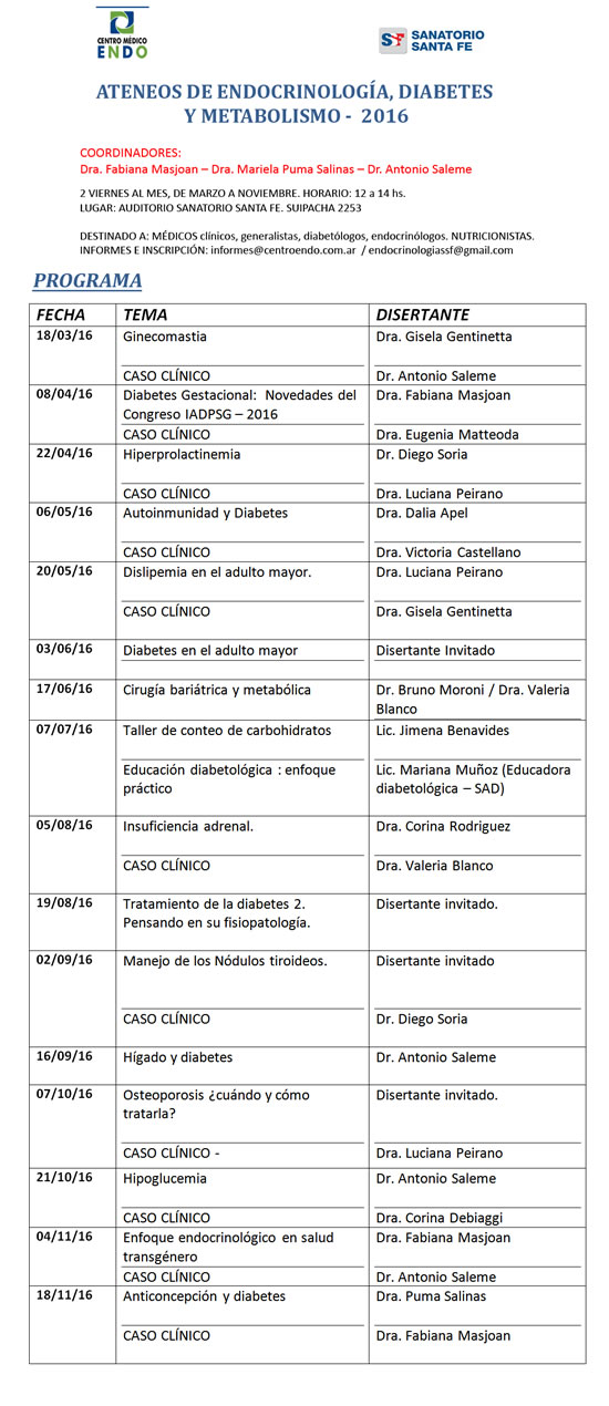 INFORMES E INSCRIPCIÓN: informes@centroendo.com.ar / endocrinologiassf@gmail.com